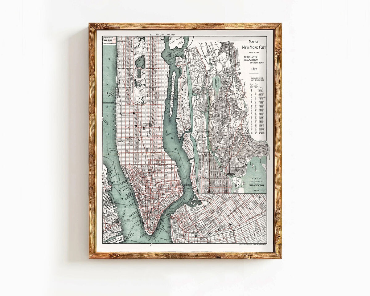 Old Map of New York 1897 Manhattan Vintage Map Wall Map Print