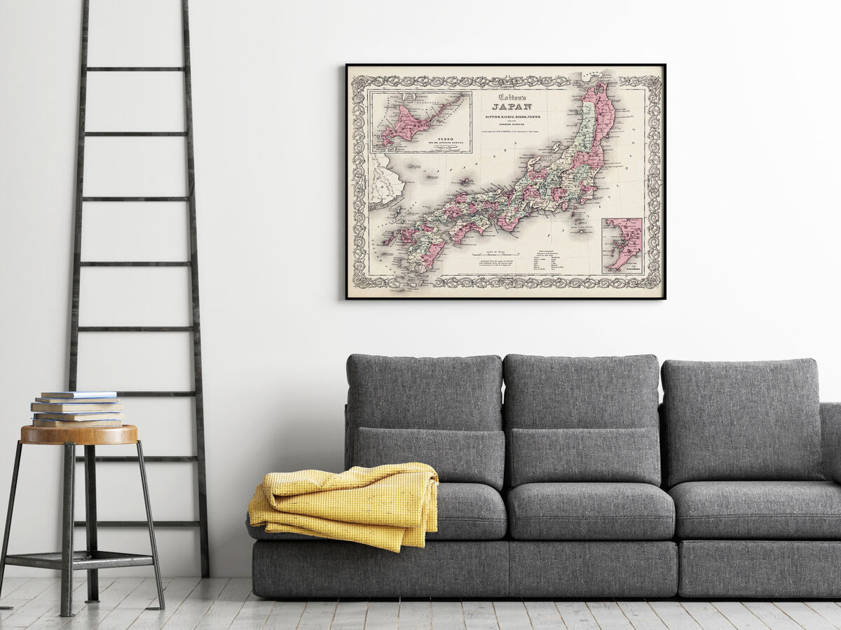 Old Map of Japan, 1855, AsiaAntique map Japan Sea